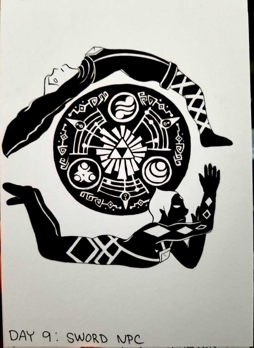 🌿 #Linktober 🌿 Day 9: sword NPC I guess this is a spoiler for SS? Please appreciate the thing in the middle, I spent so much time on it 😭 #skywardsword #legendofzelda #zelda #fi #ghirahim
