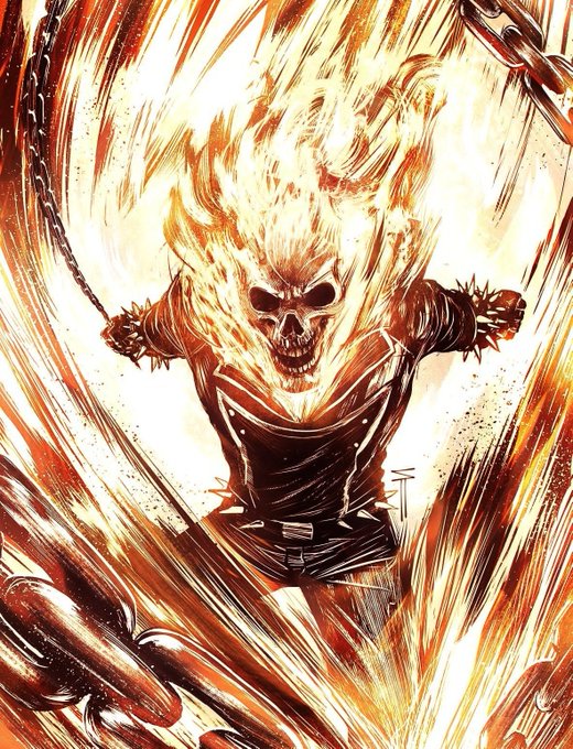 The Ghost Rider! a page from an upcoming project. Pencils inks and color by me and my dad @Achuara #MarvelComics #GhostRider