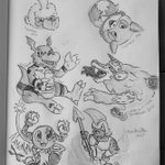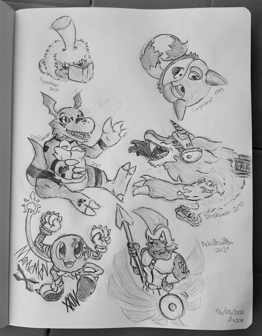 Slash that card to call new #Digimon sketches. This is the first time an X variant appears with Mamemon X, as well as a pair of recent Digimon. And #Guilmon has some bread! Cool! #sketches #pencilart #fanart #ghoststories