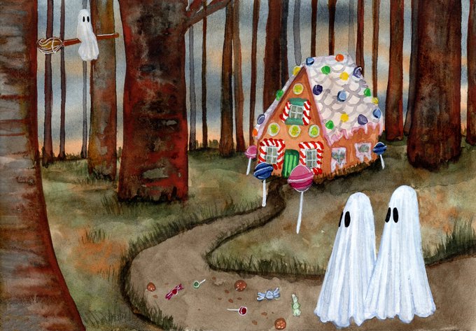 #GHOSTOBER2021 Day 11, Folklore, 6x9" watercolor painting flukelady.com/product/folklo… The original painting, prints and a limited quantity of 10 hand embellished prints are all available now! 🖤👻🧙♀️🍬 #ghostober2021 #inktober #flukelady #artistontwittter #art #witchtober #witch