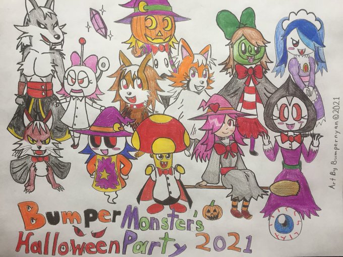 Bumper Monster’s Halloween Party 2021. Our Halloween event is now here in the third time. Let’s have some fun, for the Spooky Month. #spookyseason #BumperMonsters #ArtistOnTwitter #Cryptid #Ghostoc #cuteart #illustration #Halloween #OC #イラスト #ハロウィン #バンパーブロック