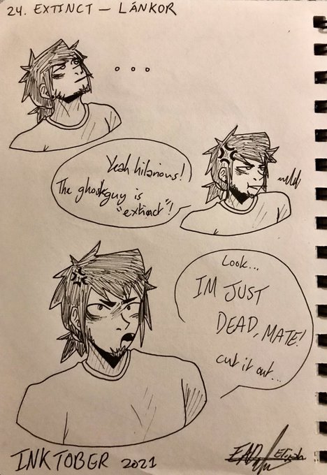 Inktober Prompt No. 24 - Extinct, with my OC Lánkor! I wasn't sure what else to do for this prompt OC wise tbh. He has a short temper ( ‾ ω ‾ ٥) #inktober #inktober2021 #inktober2021extinct #extinct #ghost #ghostoc #oc #ocart #originalcharacter #artist #art #lineart