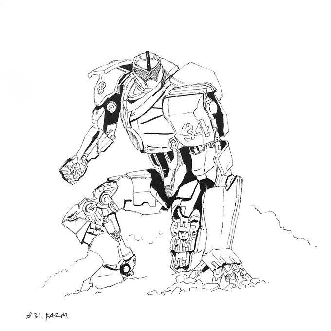<Inktober 2022 Day 31> "Farm 👨🌾" DONE!! 🔥🦾🤖 Okay, I know, I am forcing it here, but listen, paciFic RiM, still has FRM in it!😂I just accidentally heard #PacificRim main theme the other day, and I decided I have to draw #GipsyDanger! 😤 #inktober2022 #inktober2022day31 #farm