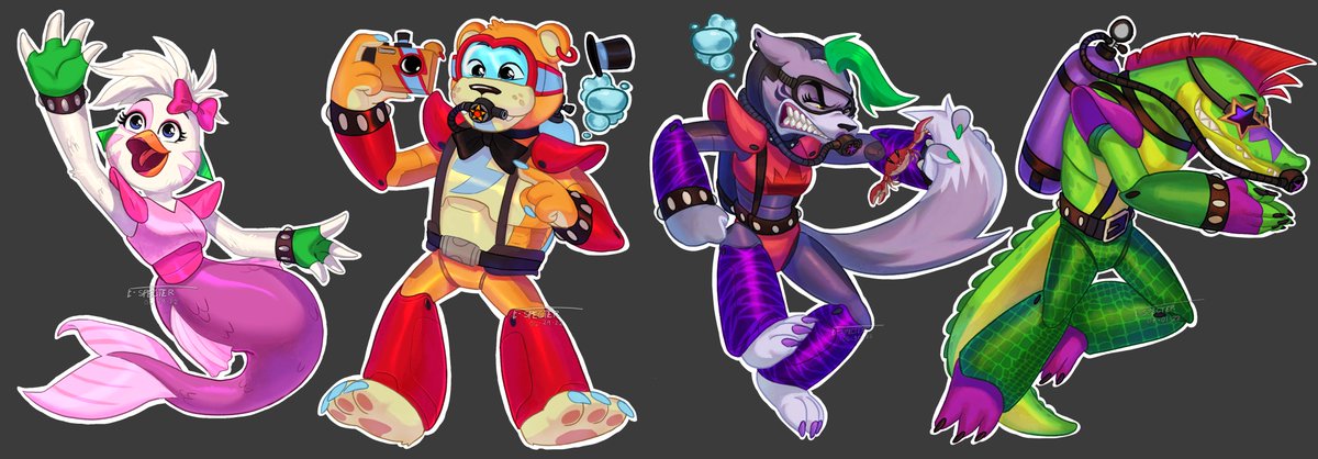 No tengo últimamente inspiración para dibujar, así que mientras les dejo algo que hize ª #FNAF #fnaffanart #FNAFsecuritybreach #fnafsb #glamrockfreddy #glamrockchica #montgomerygator #roxannewolf