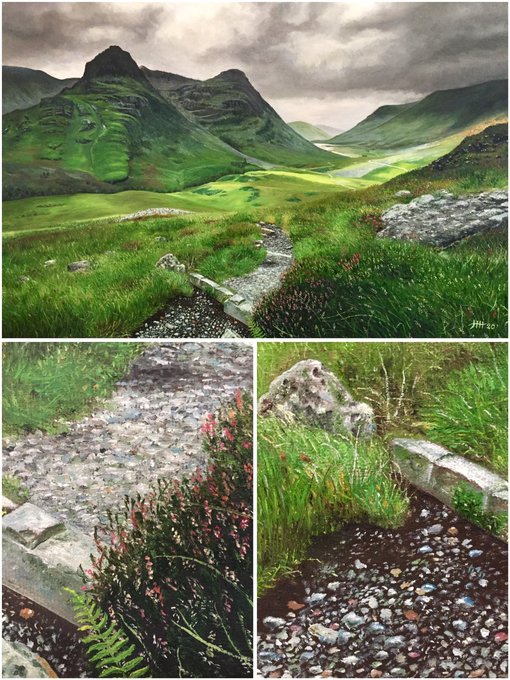 My painting of “The Three Sisters of Glencoe” 🎨 with some close-ups #mountains #threesisters #Glencoe #Scotland #oilpainting #art #artistontwitter