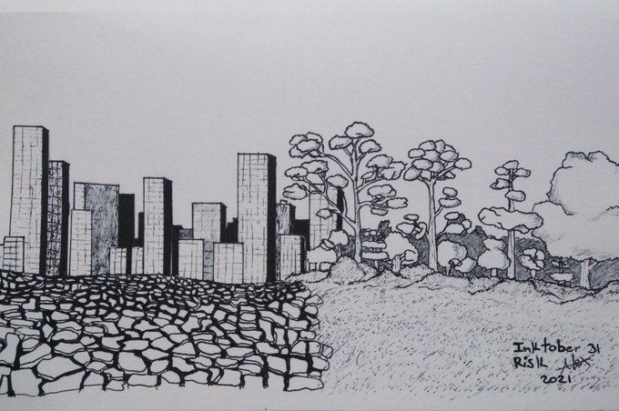 Well, right now we have our future at risk. The landscape of tomorrow depends on our actions today! #inktober #inktober2021 #day31 #risk #ClimateChange #GlobalWarming #AlexKacr