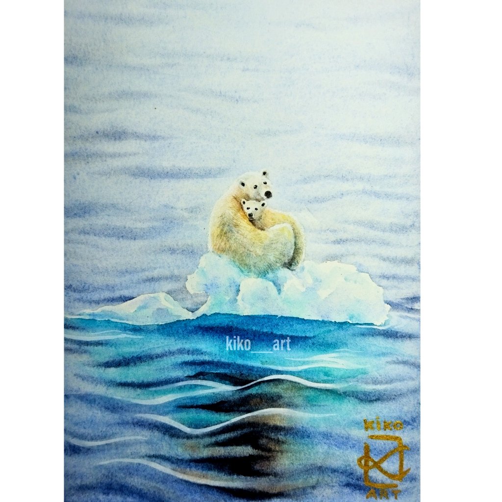 "Mom, where's our home? Why the ice melting away? I'm starving, mom....." #watercolor #GlobalWarming #climatecrisis #climatechange