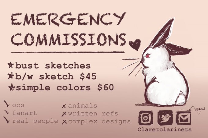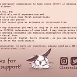 💥 EMERGENCY COMMISSIONS 💥 Taking bust commissions to help with $4,000 in vet bills for Alfredo. DM me for inquiries, or you can email me at claretclarinets@gmail.com Signal boosts appreciated. GFM: gofund.me/f4ecd3fc #commissions #art #ArtistOnTwitter #GoFundMe