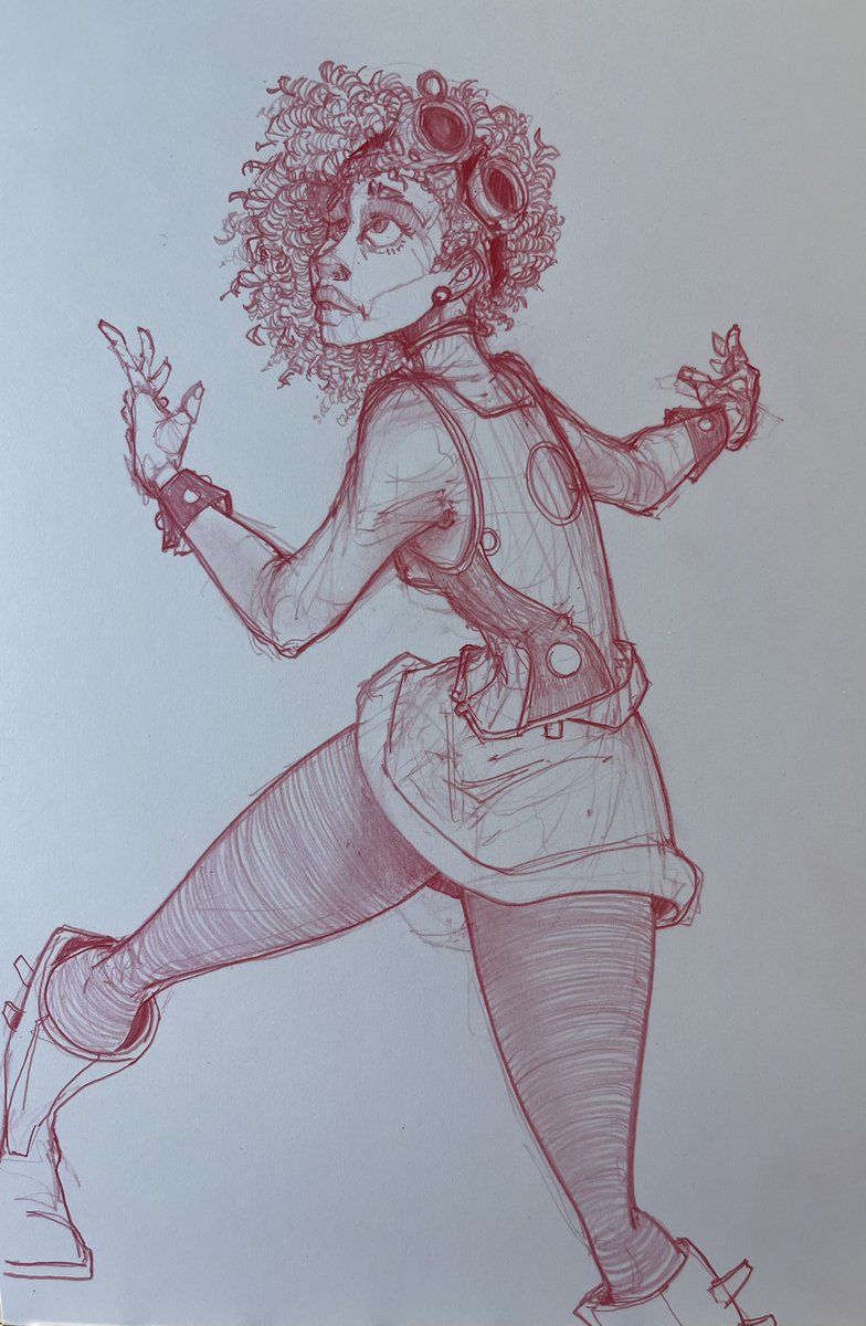 Here’s a #steampunk #characterdesign #sketch #design for #Julyfy @julyscfi . . . . . #art #illustration #doodlebags #doodle #draw #drawing #nashville #nashvilleartist #nashvilleart #steam #steampunkgirl #goggles #curlyhair