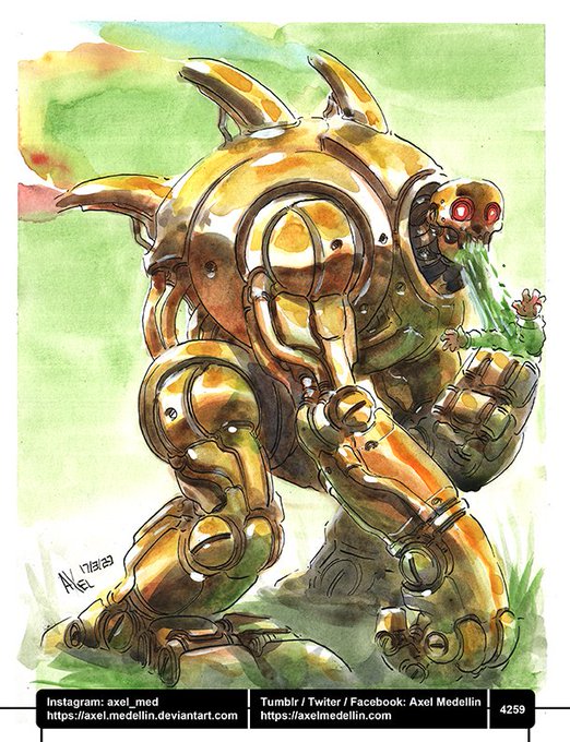 Would you mind letting me know if you can see this? My reach has gone down about 99% in a week. Thanks! #dailydrawing 4259 #dibujodiario #drawingoftheday #marchofrobots2023 #StPatricksDay2023 #element #gold #leprechaun #penandink #watercolor #traditionalart #sciencefictionart
