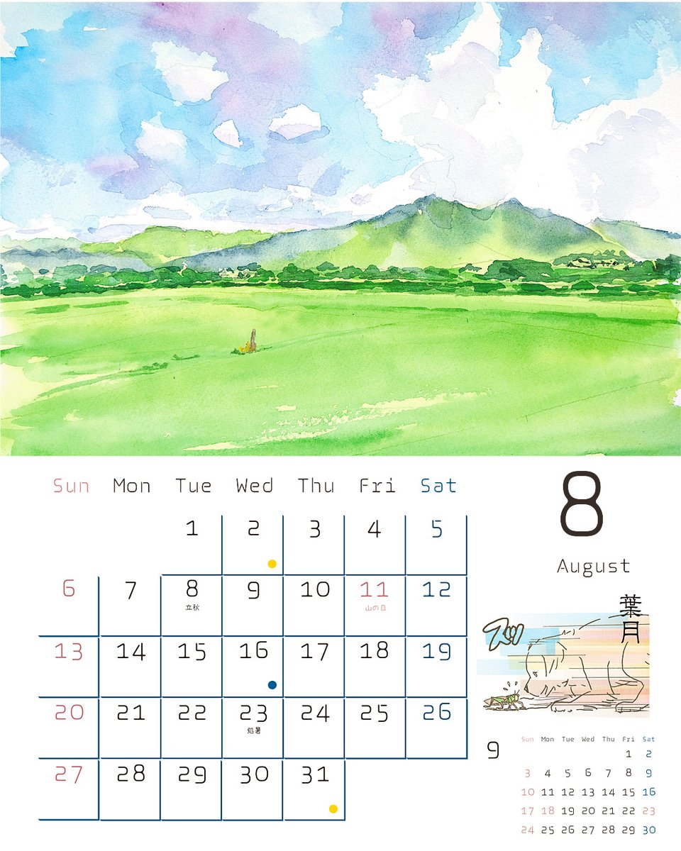 8月のタローカレンダーは南魚沼の田んぼです。後方は八海山など越後山脈です。お気に入りの場所で夏には合宿,秋には写生,冬には雪遊びでよく行きました。 #goldenretriever #虹の橋 #水彩