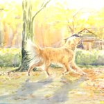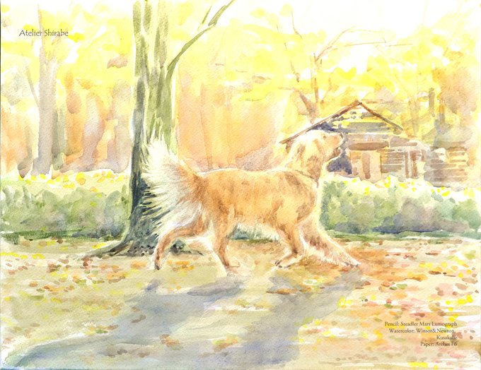 Meadow in Autumn (32*24cm ) #ForSale Besides Japan 77USD(framed)+shipping(It will cost for two months by a ship ) 国内 額装・送料込み 10,500円 お支払いは現物をご覧になってからお願いします。詳細はDMにて。 #watercolor #水彩 #goldenretriever #ゴールデンレトリバー