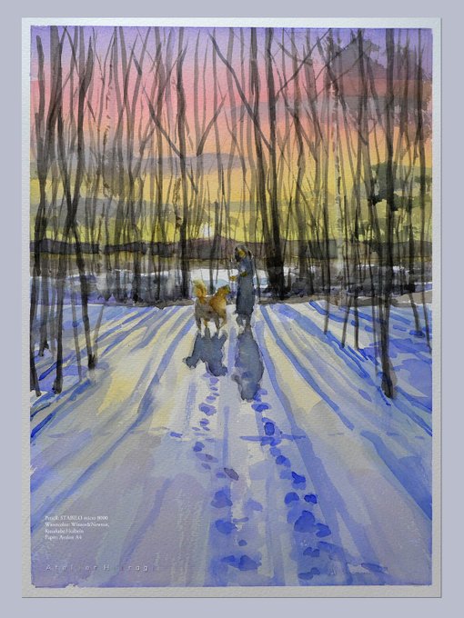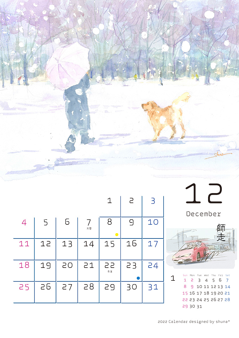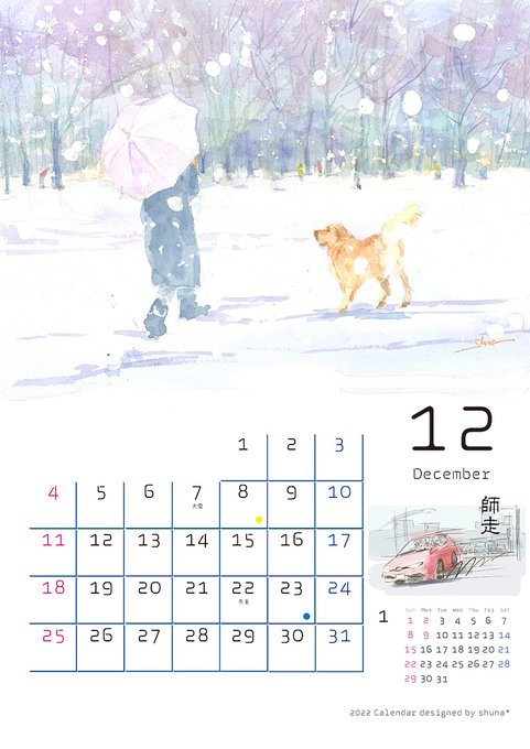 12月のタローカレンダーは代々木公園です。雪が嬉しすぎて足が浮いてます。ご愛用のみなさま,今年も1年間ありがとうございました。 #goldenretriever #虹の橋 #watercolor #水彩