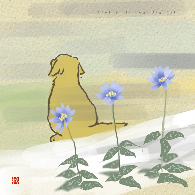 ユキワリイチゲ はるーはなーのみーの♪かっぜーのさむさよー♪ #procreate #illustration #tabletpainting #イラスト #goldenretriever #虹の橋