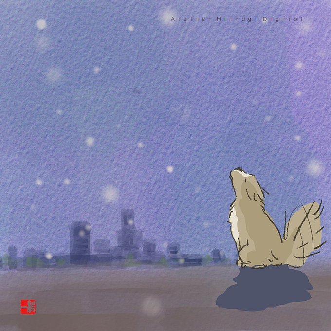 …ゆき? パパ,ゆきでしょ? ねえパパ,つもるかな。 パパ,ゆきつもるかな。 #procreate #illustration #tabletpainting #イラスト #goldenretriever #虹の橋