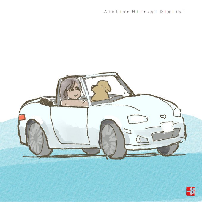 NBロードスター 運転免許の合宿に行ってるリリが実技試験に2回失格しちゃったんだって。落ち込んでます。あんなに上手にピアノを弾くのにね。元気出せー!!とLINEで励ましのイラスト送りました。 #procreate #illustration #tabletpainting #イラスト #goldenretriever #虹の橋
