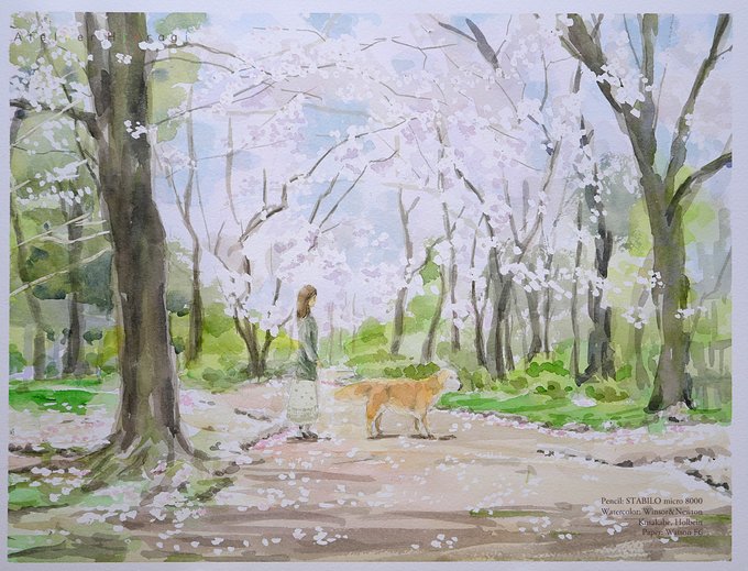 遊歩道 F6(410*318mm) For Sale↓ shirabe.sunnyday.jp/shucream/top/a… 詳細はDMでお問い合わせください。 #watercolor #art #水彩 #goldenretriever #虹の橋