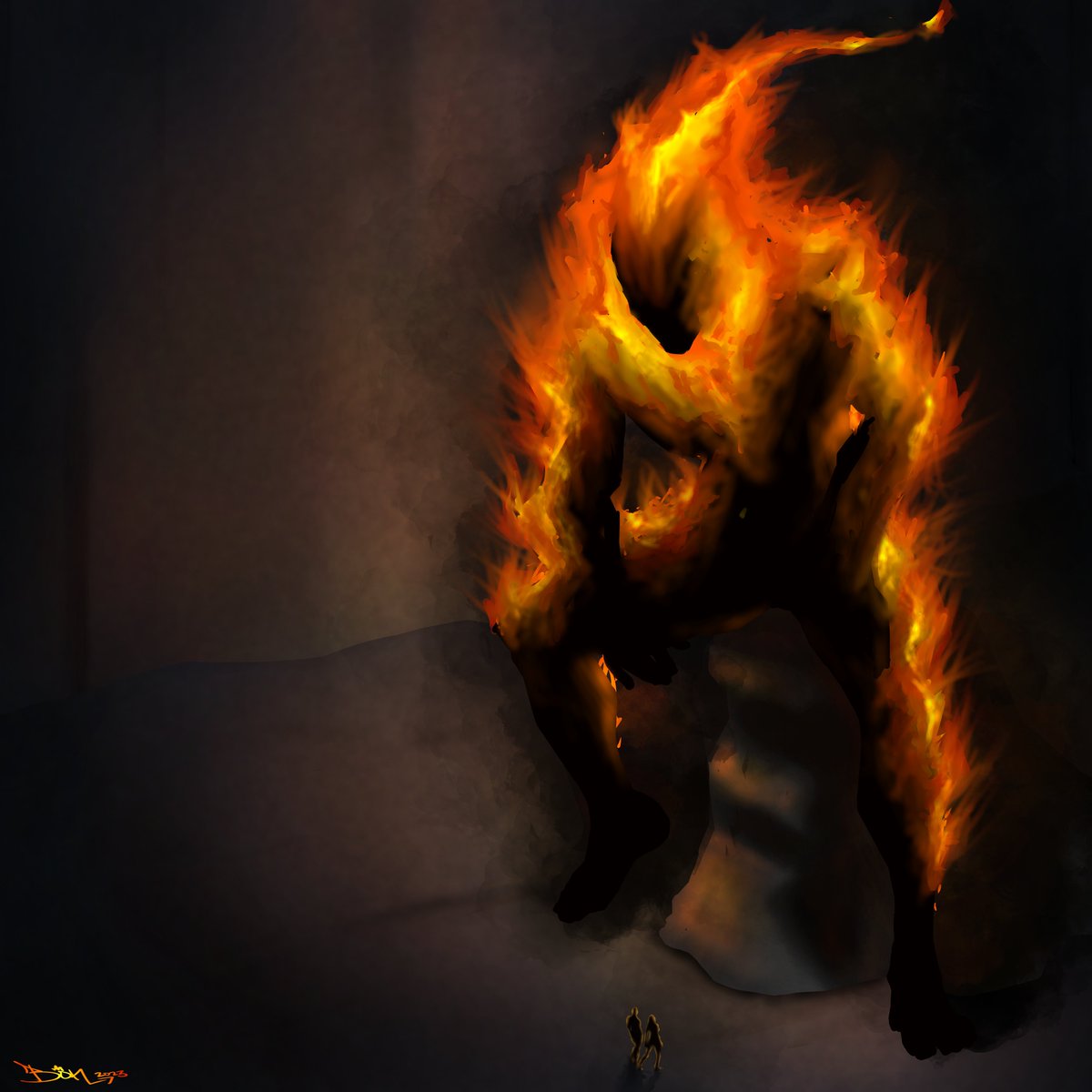 "Fire Golem" Digital Painting (oil and watercolor) 5hrs work, Done in CSP #fire #golem #digitalart #digitalpainting #fantasy #Magic #CLIPSTUDIO