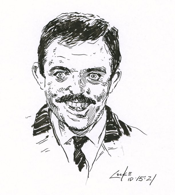 Inktober Day 15 John Astin as Gomez Addams. Time to start getting in the Halloween spirit! I hope it's not too wonky. I always loved that crazy look he had, happy but deranged! . . #inktober2021 #inktober #johnastin #gomezaddams #pensketch #sketch #drawingchallenge #halloween