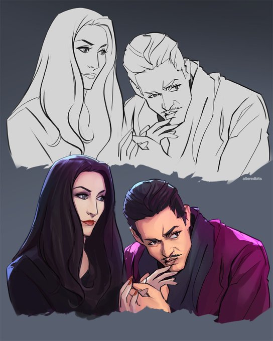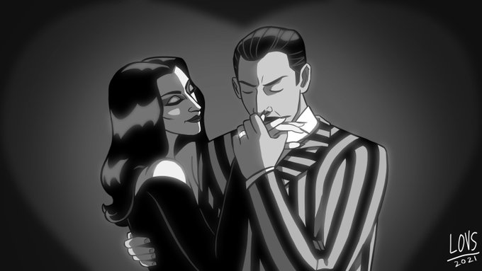 Octubre 24. Gomez y Morticia Addams para @alejopeluchev Siento la demora, ayer estuve en evento :c #Corotober2021 #Inktober #AlternateInktober #Art #fanart #morticiaaddams #gomezaddams #addamsfamily