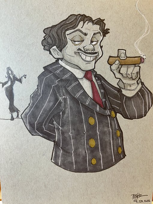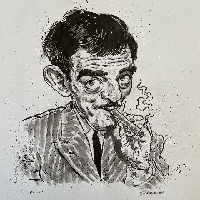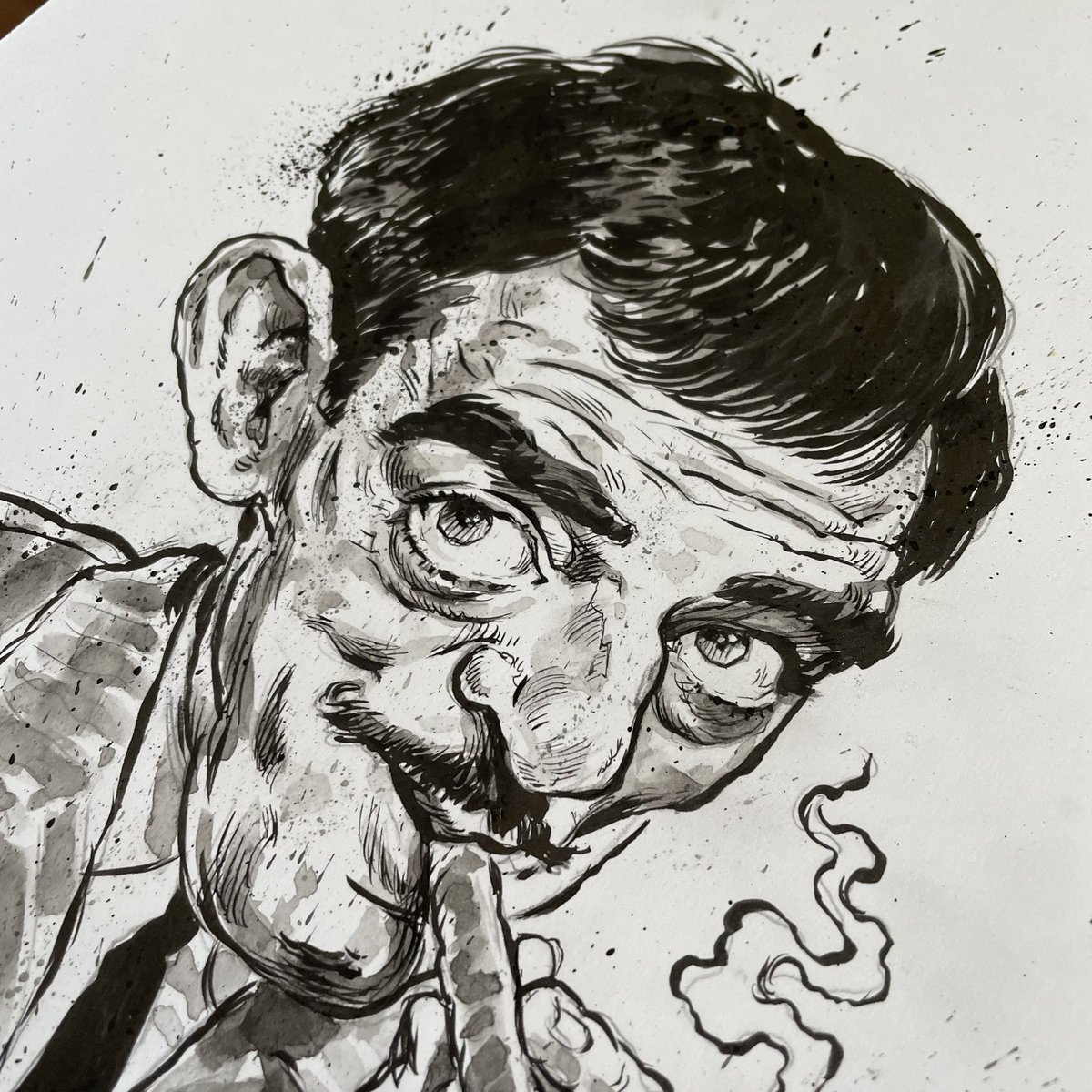 Inktober Day 31 - had to finish the power couple, here’s John Astin as Gomez Addams #gomezaddams #theaddamsfamily #addamsfamily #theyrecreepyandtheyrekooky #johnastin #inktober #inktober2021