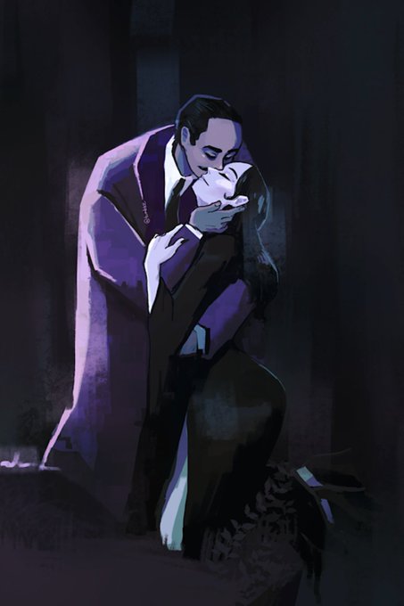 The Kiss, Night version 💜✨🦇 did this for devt day! had very lil time to work on it so i spiced it up a big for twt. #MorticiaAddams #GomezAddams
