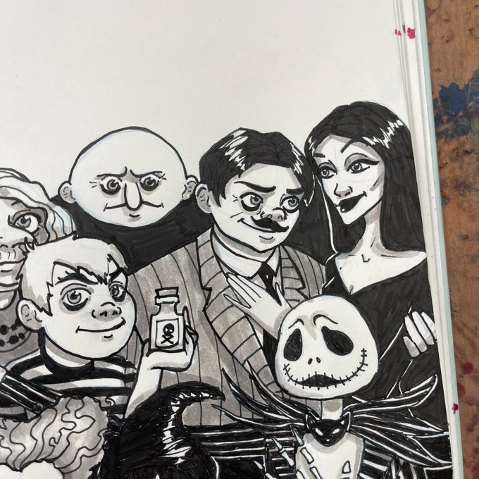 The rest of the Addams Family 🎃 #drawing #sketching #inking #traditionalart #inktober #theaddamsfamily #gomezaddams #morticiaaddams