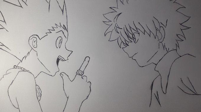 I’m probably too much of a mess to follow the #inktober2022 calendar, but I’ll try a self-indulgent version of it with my aged-up #killugon headcanon Prompt: trip #hunterxhunter #killua #gon #fanart