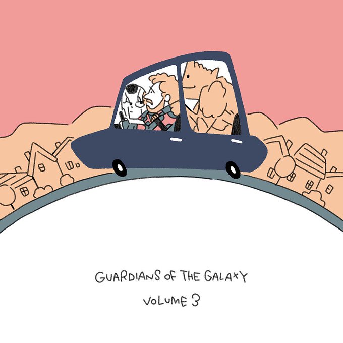 #ガーディアンズオブギャラクシー VOLUME 3のイラストです。 カウンター・アースを自動車で走るピーター、ネビュラ、グルートの3人を描きました。 #GotGVol3 #GuardiansoftheGalaxyVol3
