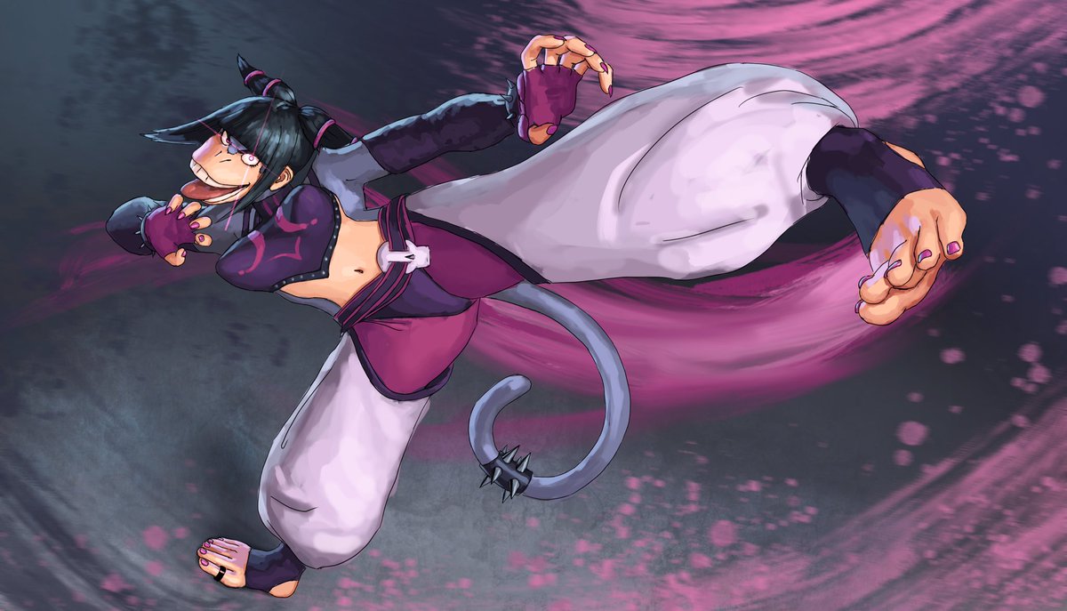 I did it! Here’s Beth, dressed as Juri, from Streets! Super determined to have had this completed in time for #monkeymonday really happy with the pose and angle #juri #StreetFighter #monkey #monke #goth #anthro #art #digitalart #procreateart
