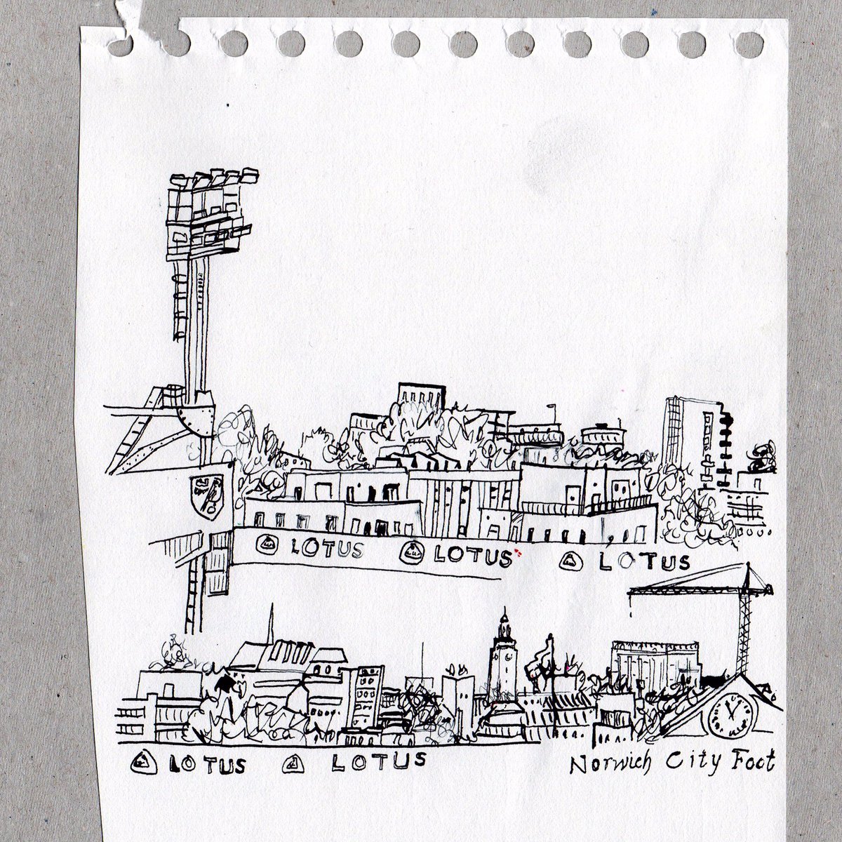As we waited on the South Stand steps in our caps and gowns, I was taken by the Norwich skyline behind Carrow Rd. #NUA #graduation #NorwichCity #ArtistOnTwitter #thedailysketch