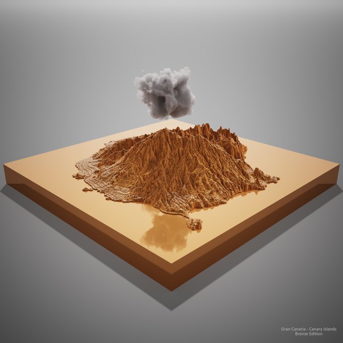 Our bronze edition of Gran Canaria is taken from a slightly different aspect, with the city of Las Palmas near the small peninsula in the foreground. All our islands are created from real-world global geographical data 🌎 #grancanaria #nft #nftartcollector #voxelart