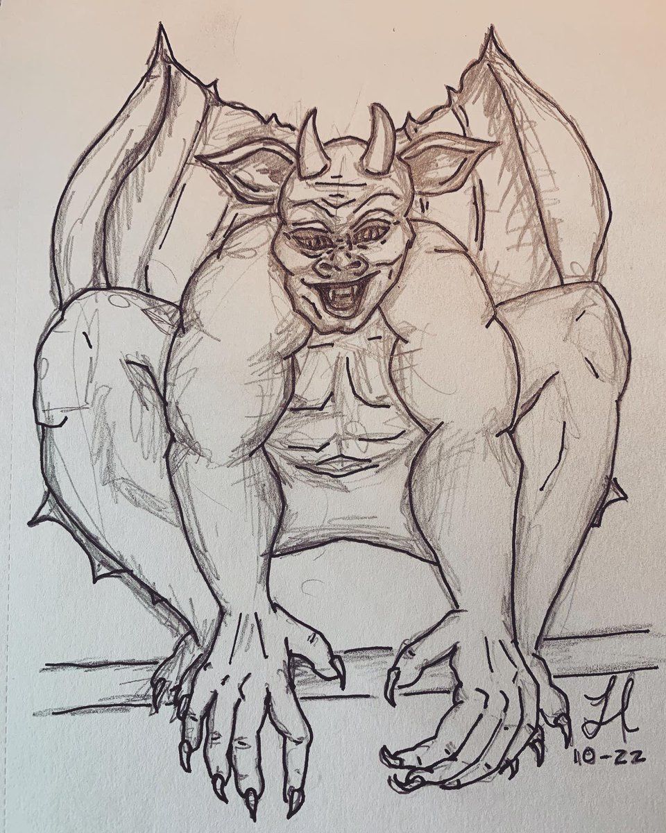 Hey there evil spirit, ready to be eaten? #inktober #inktober22 #art #ArtistOnTwitter #drawing #sketch #ink #gargoyle #greek #mythology