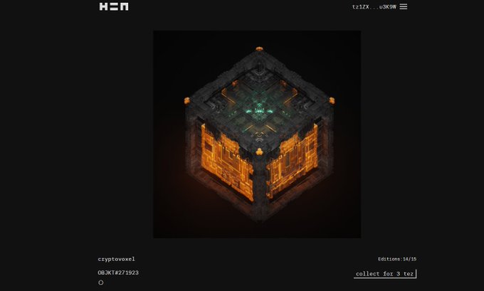 9/10 Edition, golden dot #3Danimation(#Video) on #hicetnunc for 1.5 #XTZ.. there are 3 more of this type and after that I will change the style ((hic.art/351167)) #rarenft #hicetnunc #hicetnunc2000 #NFTs #NFTdrop #NFTartist #greennft #Tezos #NFTs #NFTCommunity #voxelart