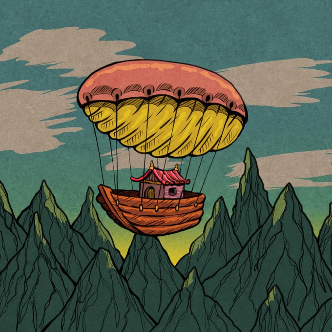 "Mountain Blimp" 2.5 Tez hicetnunc.xyz/objkt/215461 #artwork #NFT #CleanNFT #GreenNFT #NFTartist