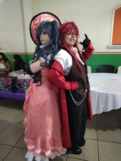 Kuroshitsuji in the house! 🍵🌹🌹♥️🖤🐑 #Kuroshitsuji #Cosplay #cielphantomhive #LadyCiel #Kuroshitsujicosplay #GrellSutcliff #GrellSutcliffcosplay