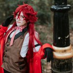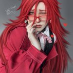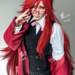 It's grell hours~ I'm really happy with how I look as her with my restyled wig and recently bleached eyebrows! #Cosplay #grellsutcliff #blackbutler