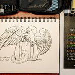#Inktober day 13: Kind ☔ Work is going slowly but I still have time to complete three more prompts and achieve today's goal! #FocusRetreatCenter #Illustration #Drawing #Ink #Fantasy #Gryphons #Twitch #Inktober2022 #Kuretake_Inktober #Kuretake_Inktober2022 #MoleskineInktober