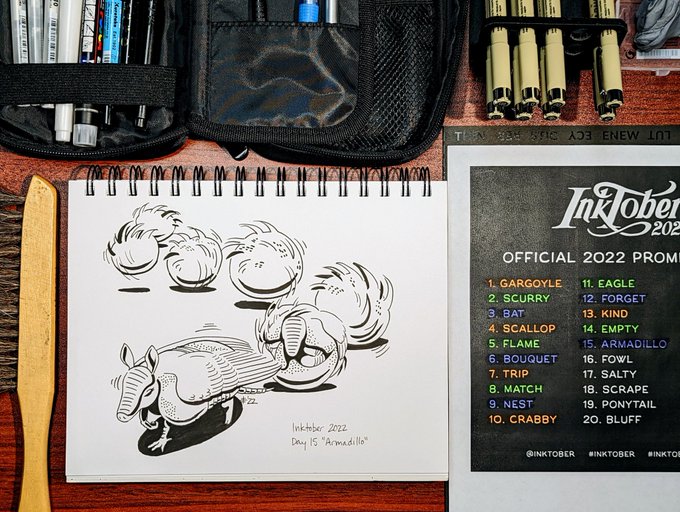 #Inktober day 15: Armadillo 🪖 Started another rewatch of Moon Knight for these last couple prompts 😍 #FocusRetreatCenter #Illustration #Drawing #Ink #Fantasy #Gryphons #Twitch #Inktober2022 #Kuretake_Inktober #Kuretake_Inktober2022 #MoleskineInktober