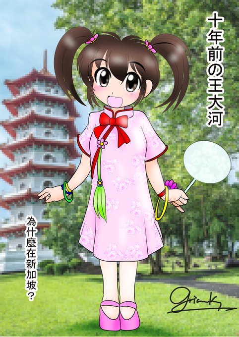 #GuP版深夜のお絵描き60分勝負 #GuP版深夜のお絵描き60分勝負_20220905 お題「10年前」 ぎりぎりかな? 数年前、シンガポールで、お誕生日なのかこんな女の子が中華庭園で家族と一緒に記念写真撮ってたのを思い出して描きましたw
