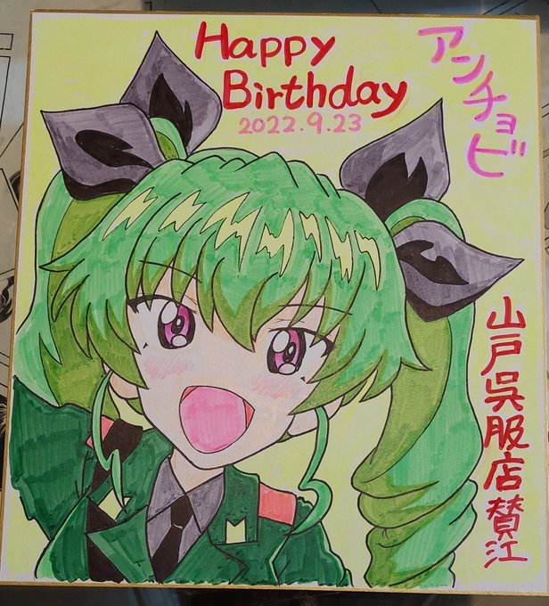 お題「アンツィオ高校」 今日は夜勤勤務なので、昨日描いたドゥーチェの誕生日色紙の続きを… 色を塗ったので、あとは祭壇に届けるだけ… #GuP版深夜のお絵描き60分勝負_20220921 #GuP版深夜のお絵描き60分勝負