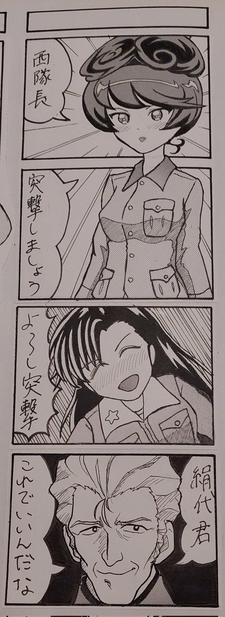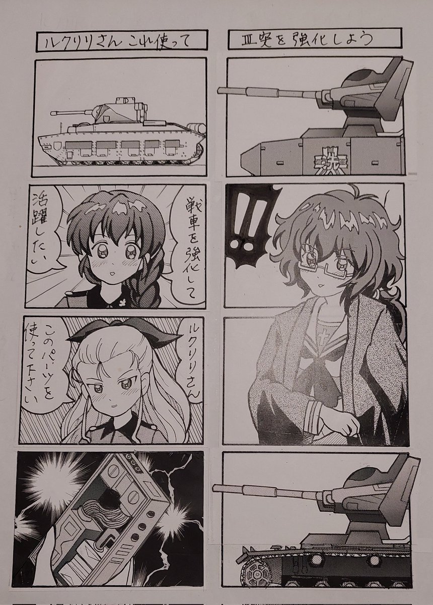 お題「おりょう」 夜勤明け帰宅して仕上げてみた。 中学生の時に、機動戦士ガンダムでMSよりマゼラアタックの方がカッコいいと思った。 #GuP版深夜のお絵描き60分勝負_20221114 #ガルパン四コマ漫画 #GuP版深夜のお絵描き60分勝負
