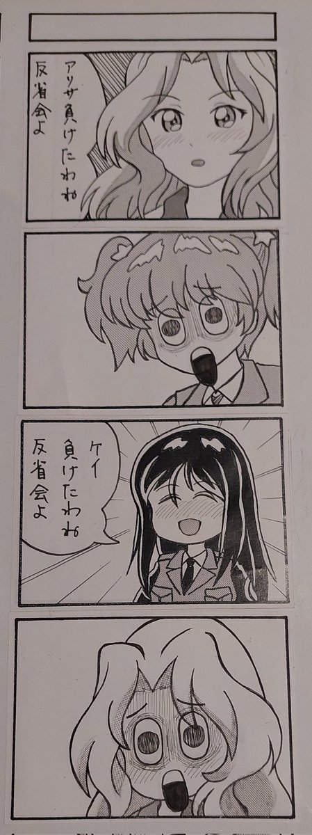 お題「サンダース大学付属高校」 ケイさん♥️誕生日おめでとう😉❤️ サンダースのギャグネタは、タカシ、反省会、馬鹿でも乗れる戦車ぐらいだな~ #GuP版深夜のお絵描き60分勝負_20230116 #ガルパン四コマ漫画 #GuP版深夜のお絵描き60分勝負 #ケイ生誕祭2023