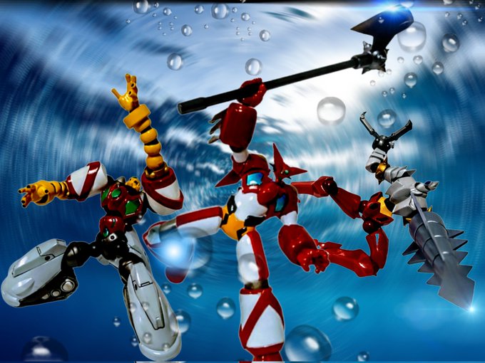 #夜のフィギュア撮影会 お題「今月のベストオモ写」 今月から勉強してる加工アプリのお陰で、以前は画角の都合で諦めていた戦闘シーンや集合写真などを撮れるようになりました📸 #GuernicaCollection #GetterPhotoMuseum 今月はコチラの名義は低浮上でしたが、来月はもうちょい投稿数増やしたいです💫
