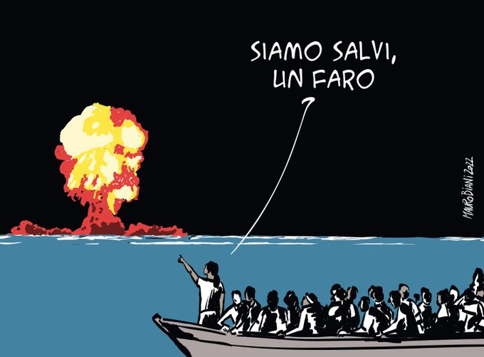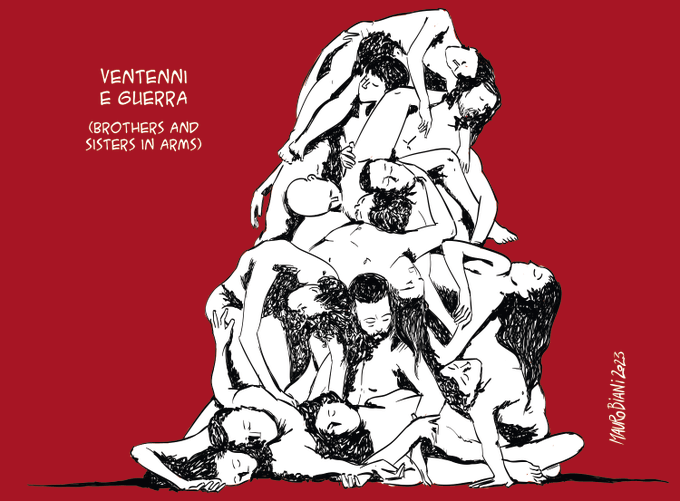 Ora #Atlantide @La7tv @andreapurgatori presenta: "Un anno in #guerra". Col cardinale #MatteoZuppi, il filosofo #UmbertoGalimberti, i reportage straordinari dal Donbass di @mannocchia, il direttore di Domino @dlfabbri, l’esperta di comunicazione #AnnaMariaTesta e la mia vignetta