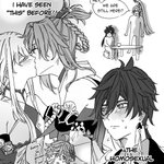 Love is in the air and cloud retainer ain’t having any of it 😨 . . . #Tartali #Chili #Zhongli #Childe #Tartaglia #guiping #guizhong #madameping #cloudretainer #genshinimpact #genshinimpactfanart #原神 #原神イラスト #タル鍾 #公钟