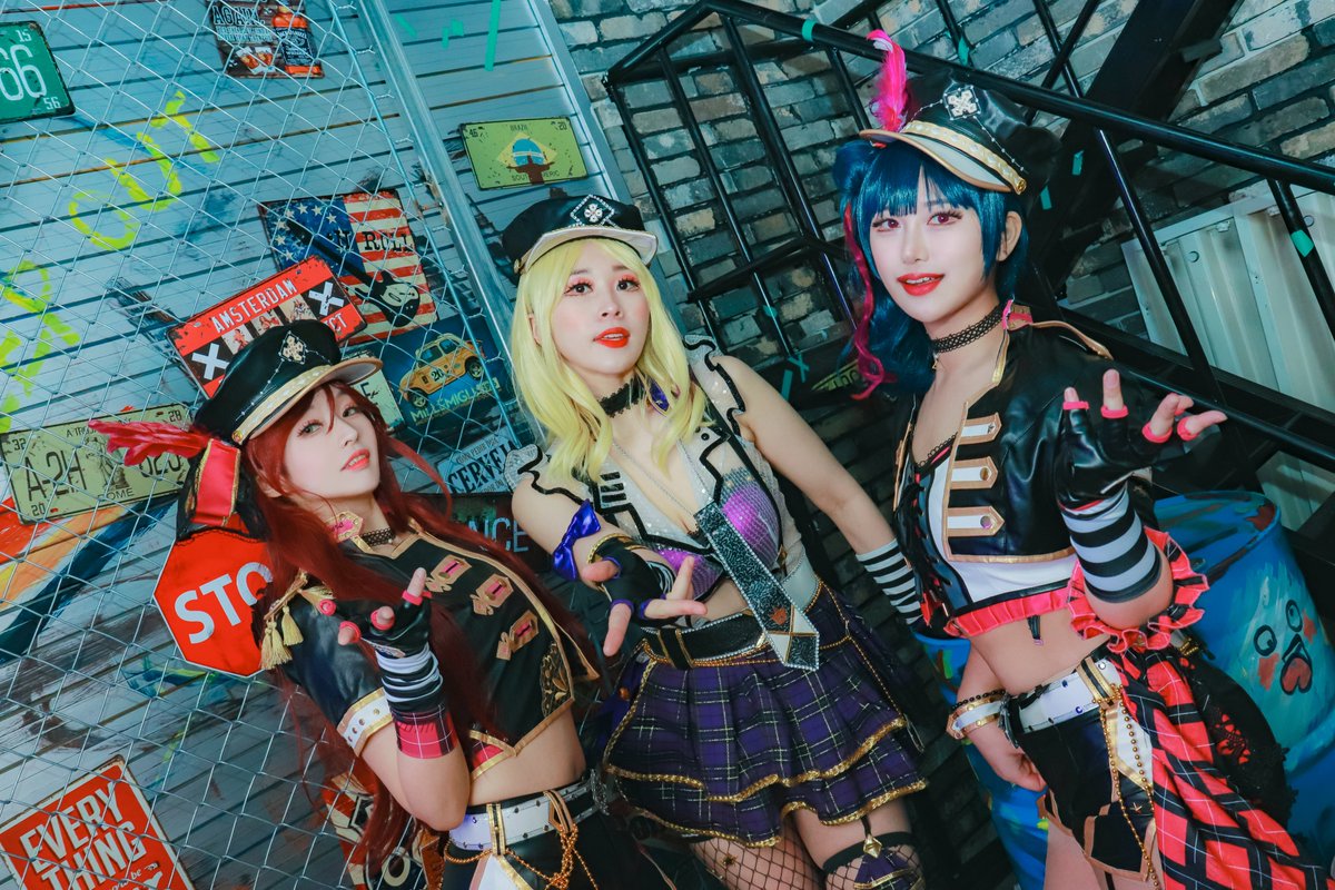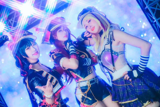 [COS PHOTO⚠️] 러브라이브 선샤인 - 길티키스 😈Love Live! Sunshine!! - Guilty Kiss🖤 마리 - 바삭님 @basak129 리코 - 란님 @Ran2_cos 요시코 - 다로님 @Daro713_ P.스텔라님 @stxllx_mxxn #lovelive #lovelive_sunshine #小原鞠莉 #GuiltyKiss #cosplay