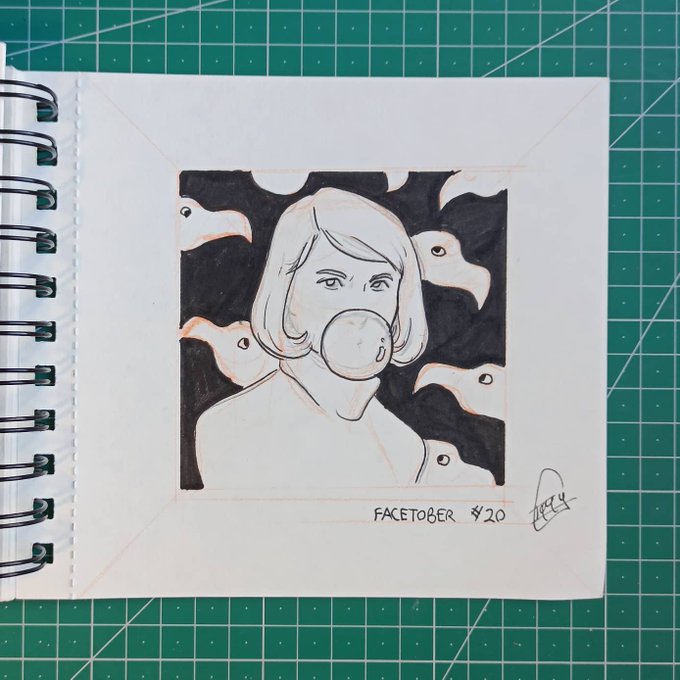 Facetober #20 #🍬 . #whitehair #bubblegum #flamingo prompt list by @charlyclements . #candy #sweet #gum #girl #myoc #pattern #ink #drawing #illustration #fashion #sketchbook #inktober2021 #facetober