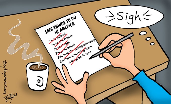 #GunViolence stories are nothing new, but the ones this past week were pretty bizarre #cartoon #drawing #art #illustration #illustrations tonybayertoons.com/2023%200422%20…