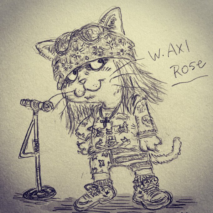 猫界のガンズアンドローゼズ🌹 みんな大好きアクセルローズ🎤😸 #イラスト #アナログイラスト #猫イラスト #GunsNRoses #axlrose #みんなで楽しむTwitter展覧会